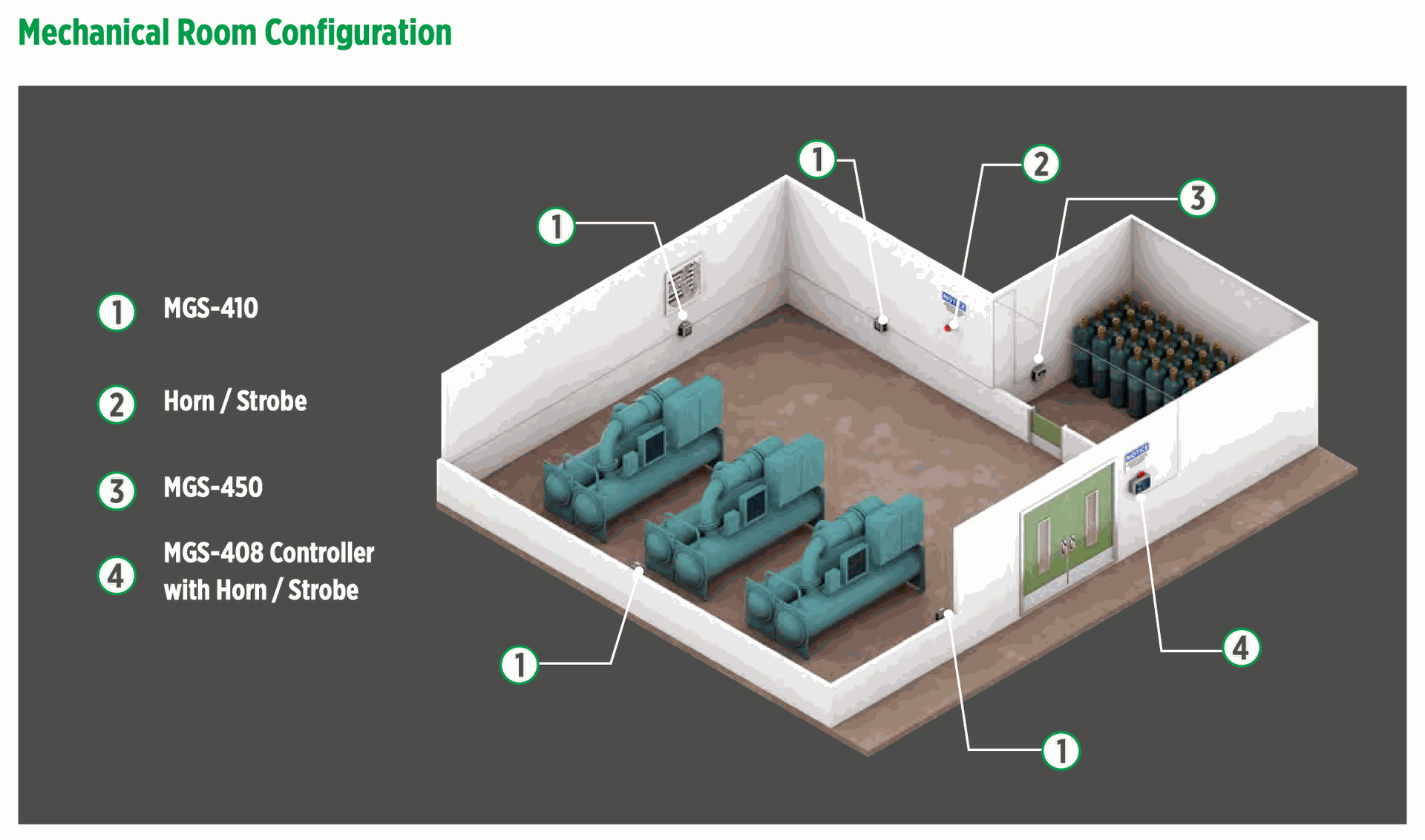 MSA Bacharach’s MGS-400 and MGS-500 and MGS-250 Series Gas Detectors make compliance with mechanical equipment room and refrigeration safety codes simple and easy, saving time and money on equipment and installation. Using the MGS App, users can intuitively use, commission and maintain their gas detection system without the need for specialty training or tools.