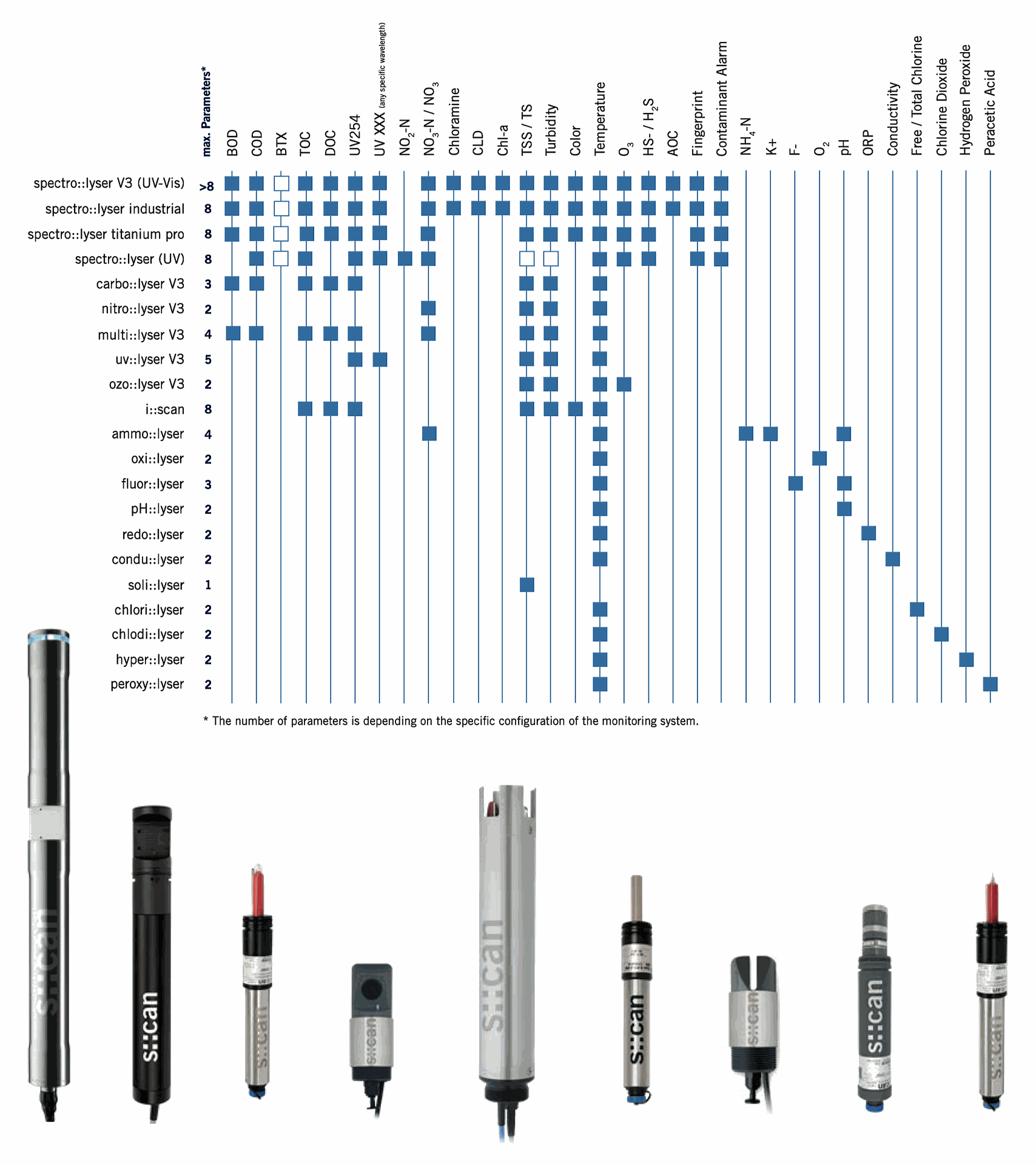 s::can’s proprietary algorithms analyze and decompose the spectral data to provide measurements for many important parameters including: nitrite, COD, BOD, TSS, dissolved H2 S and many more.