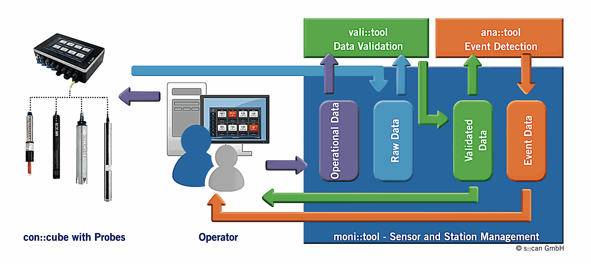 The s::can software package for water quality monitoring is split into three modules: